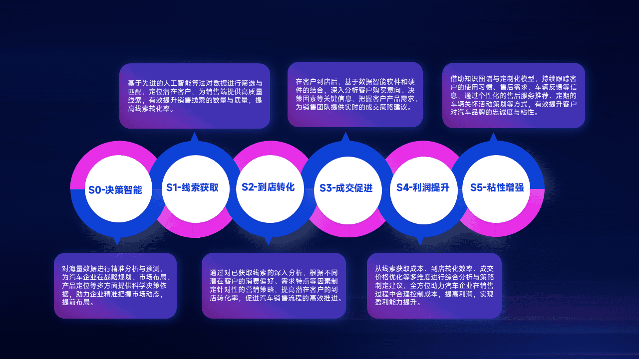 通过拓宽潜在客户来源、、、优化线索分配并提高到店转化率,,,以增强销售效率。。。。同时,,,,利用线索数据不断优化分析模型,,有效提升转化率,,扩大营销影响力。。。。